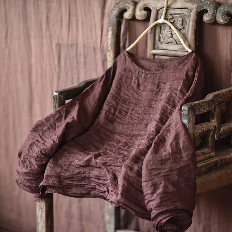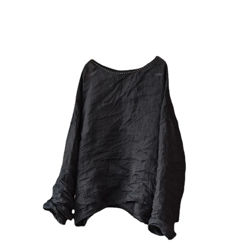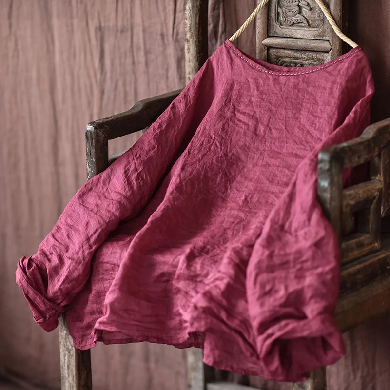 Women T Shirt Cotton Linen Vintage 2024 Spring Long Sleeve Loose Irregular O-Neck Casual Women Solid Color T-Shirts